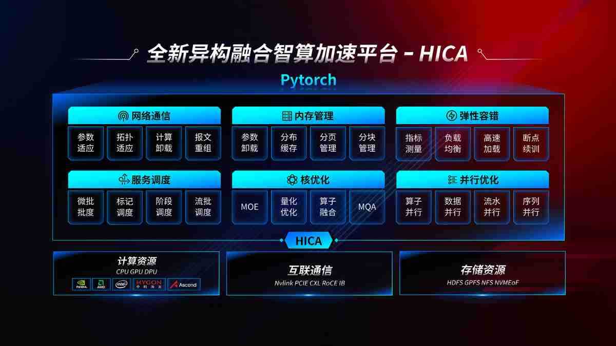 通过自研的服务层、、、、中间适配层、、、、以及调度编排算法,,,,采用数据并行、、、、模型并行等多种并行方式,,,把并行计算任务进行有效的分解,,使其分别由相应的软件栈和算力资源来承接。。当GPU资源变化,,HICA可以实时动态调度计算子任务并调整模型拓扑和架构,,,,以充分聚合各种算力资源。。。
